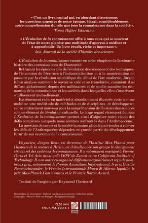 Extrêmement riche en matériel et abondamment illustrée, cette somme mobilise une multitude de méthodes et de disciplines, et développe un cadre entièrement nouveau pour la compréhension de l’histoire des sciences comme élément de l’évolution culturelle. Le large regard rétrospectif qu’ose L’Évolution de la connaissance permet ainsi d’aiguiser notre vision des défis complexes auxquels nous sommes confrontés dans l’Anthropocène.
