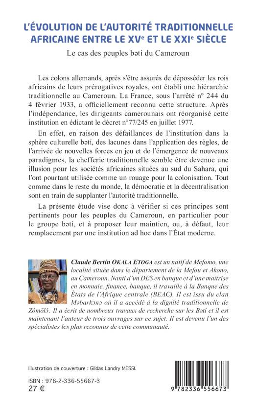 Les colons allemands, après s'être assurés de déposséder les rois africains de leurs prérogatives royales, ont établi une hiérarchie traditionnelle au Cameroun. La France, sous l'arrêté n° 244 du 4 février 1933, a officiellement reconnu cette structure. Après l'indépendance, les dirigeants camerounais ont réorganisé cette institution en édictant le décret n°77/245 en juillet 1977. En effet, en raison des défaillances de l'institution dans la sphère culturelle bətí, des lacunes dans l'application des règles, de l'arrivée de nouvelles forces en jeu et de l'émergence de nouveaux paradigmes, la chefferie traditionnelle semble être devenue une illusion pour les sociétés africaines situées au sud du Sahara, qui l'ont pourtant utilisée comme un rouage pour la colonisation. Tout comme dans le reste du monde, la démocratie et la décentralisation sont en train de supplanter l'autorité traditionnelle. La présente étude vise donc à vérifier si ces principes sont pertinents pour les peuples du Cameroun, en particulier pour le groupe bətí, et à proposer leur maintien, ou, à défaut, leur remplacement par une institution ad hoc dans l'État moderne.