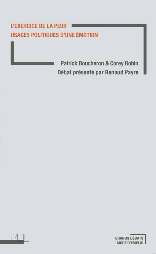 Crainte de la récession, spectre de la guerre, menace du terrorisme : la peur a toujours été au fil des siècles une arme politique redoutable et un instrument de répression exemplaire. De l'Italie médiévale à l'Amérique contemporaine, Patrick Boucheron et Corey Robin interrogent tour à tour les divers usages d'une émotion ancestrale. Conçu à partir d'une rencontre dans le cadre du festival « Mode d'emploi », organisé par la Villa Gillet en novembre 2014, ce livre propose une ouverture par Renaud Payre, un dialogue réagencé et révisé où alternent les voix de Patrick Boucheron et de Corey Robin, enfin un post-scriptum inédit de la main de chacun des deux intervenants.