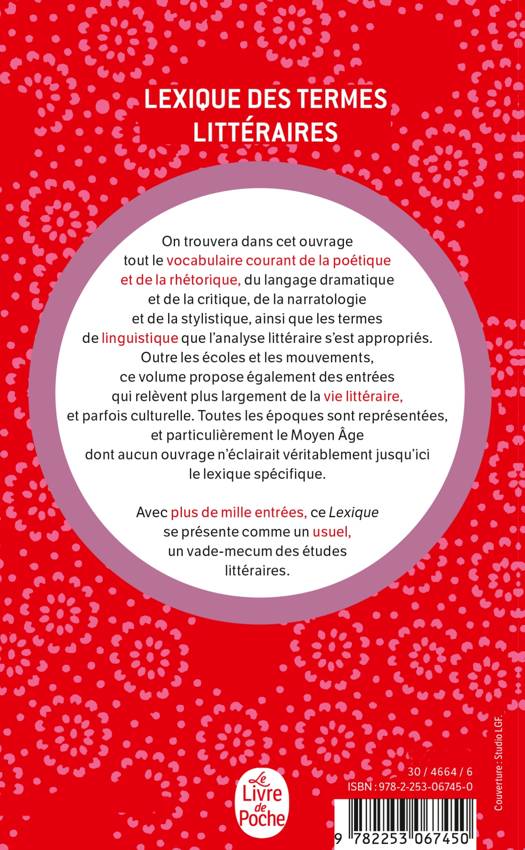 On trouvera dans cet ouvrage tout le vocabulaire courant de la poétiqueet de la rhétorique, du langage dramatique et de la critique, de la narratologie et de la stylistique, ainsi que les termes de linguistique et de l’analyse littéraire.