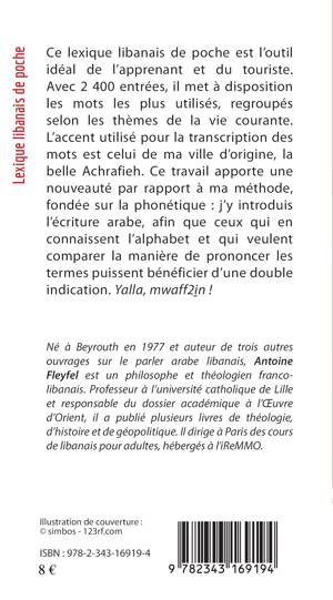 Ce lexique libanais est l’outil idéal de l’apprenant et du touriste. Avec 2 400 entrées, il met à disposition les mots les plus utilisés, regroupés selon les thèmes de la vie courante. L’accent utilisé pour la transcription des mots est celui d'Achrafieh, ville d’origine de l'auteur. Outre la phonétique, ce lexique introduit l’écriture arabe, afin que ceux qui en connaissent l’alphabet et qui veulent comparer la manière de prononcer les termes puissent bénéficier d’une double indication.