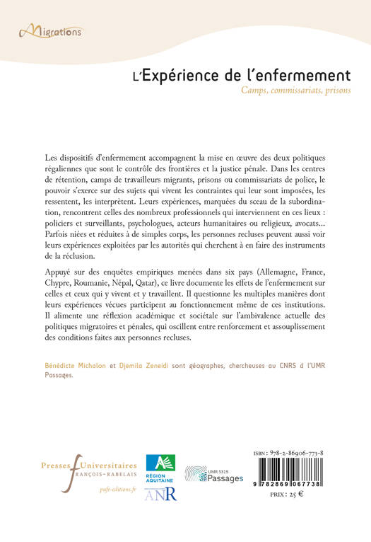 Les dispositifs d'enfermement accompagnent la mise en oeuvre des deux politiques régaliennes que sont le contrôle des frontières et la justice pénale. Dans les centres de rétention, camps de travailleurs migrants, prisons ou commissariats de police, le pouvoir s'exerce sur des sujets qui vivent les contraintes qui leur sont imposées, les ressentent, les interprètent. Leurs expériences, marquées du sceau de la subordination, rencontrent celles des nombreux professionnels qui interviennent en ces lieux : policiers et surveillants, psychologues, acteurs humanitaires ou religieux, avocats…Parfois niées et réduites à de simples corps, les personnes recluses peuvent aussi voir leurs expériences exploitées par les autorités qui cherchent à en faire des instruments de la réclusion. Appuyé sur des enquêtes empiriques menées dans six pays (Allemagne, France, Chypre, Roumanie, Népal, Qatar), ce livre documente les effets de l'enfermement sur celles et ceux qui y vivent et y travaillent. Il questionne les multiples manières dont leurs expériences vécues participent au fonctionnement même de ces institutions. Il alimente une réflexion académique et sociétale sur l'ambivalence actuelle des politiques migratoires et pénales, qui oscillent entre renforcement et assouplissement des conditions faites aux personnes recluses.