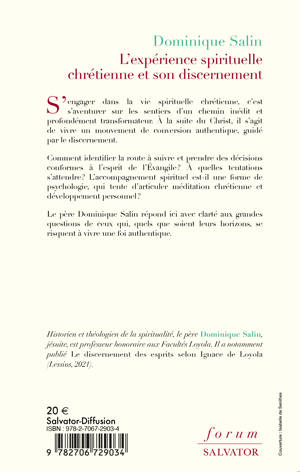 S'engager dans la vie spirituelle chrétienne, c'est s'aventurer sur les sentiers d'un chemin inédit et profondément transformateur. À la suite du Christ, il s'agit de vivre un mouvement de conversion authentique, guidé par le discernement. Comment identifier la route à suivre et prendre des décisions conformes à l'esprit de l'Évangile ? À quelles tentations s'attendre ? L'accompagnement spirituel est-il une forme de psychologie, qui tente d'articuler méditation chrétienne et développement personnel ? Le père Dominique Salin répond ici avec clarté aux grandes questions de ceux qui, quels que soient leurs horizons, se risquent à vivre une foi authentique.