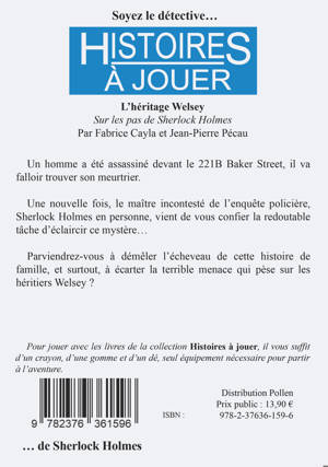 Un homme a été assassiné devant le 221B Baker Street, il va falloir trouver son meurtrier. <br /><br /> Une nouvelle fois, le maître incontesté de l'enquête policière, Sherlock Holmes en personne, vient de vous confier la redoutable tâche d'éclaircir ce mystère...<br /><br /> Parviendrez-vous à démêler l'écheveau de cette histoire de famille, et surtout, à écarter la terrible menace qui pèse sur les héritiers Welsey ?
