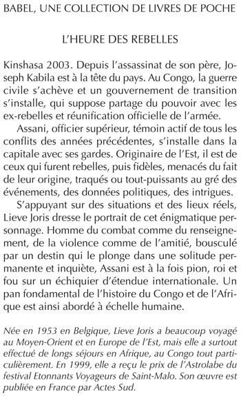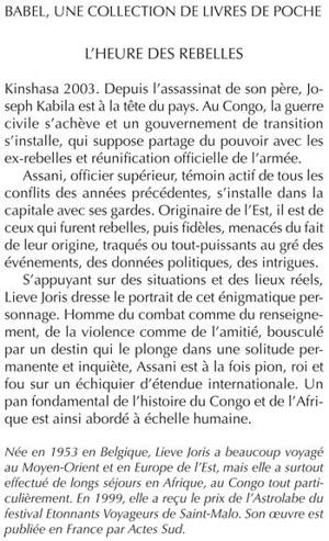 Kinshasa 2003. Depuis l'assassinat de son père, Joseph Kabila est à la tête du pays. Au Congo, la guerre civile s'achève et un gouvernement de transition s'installe, qui suppose partage du pouvoir avec les ex-rebelles et réunification officielle de l'armée. Assani, officier supérieur, témoin actif de tous les conflits des années précédentes, s'installe dans la capitale avec ses gardes. Originaire de l'Est, il est de ceux qui furent rebelles, puis fidèles, menacés du fait de leur origine, traqués ou tout-puissants au gré des événements, des données politiques, des intrigues. S'appuyant sur des situations et des lieux réels, Lieve Joris dresse le portrait de cet énigmatique personnage. Homme du combat comme du renseignement, de la violence comme de l'amitié, bousculé par un destin qui le plonge dans une solitude permanente et inquiète, Assani est à la fois pion, roi et fou sur un échiquier d'étendue internationale. Un pan fondamental de l'histoire du Congo et de l'Afrique est ainsi abordé à échelle humaine.