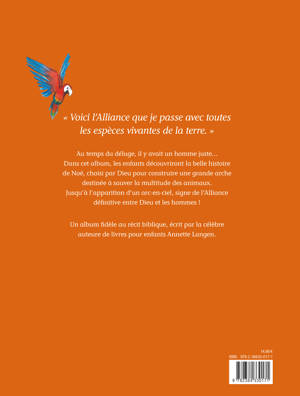 Les enfants adorent tous l’histoire de Noé ! Ils retrouveront dans ce magnifique album grand format l'histoire du déluge, la construction de l'arche, la grande variété d’animaux qui y montent, et enfin le signe de l’Alliance entre Dieu et les hommes : l’arc-en-ciel ! Un album fidèle au récit biblique, raconté par la célèbre auteure de livres pour enfants Annette Langen, et magnifiquement illustré par Marina Hoffmann. À partir de 3 ans.