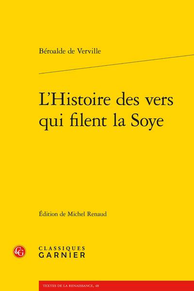 Composé au moment où Henri IV souhaitait développer la production nationale de la soie, ce poème célébrant la culture du ver à soie en Touraine n'a guère retenu l'attention des commentateurs. La présente édition y remédie en replaçant cette oeuvre hybride dans une nouvelle perspective intertextuelle qui la confronte aux productions antérieures de la littérature séricicole italienne et néolatine, aussi bien qu'à l'ensemble du corpus vervillien. Dans ce poème à la fois archaïque et audacieux, Béroalde de Verville se révèle tel qu'en lui-même avec son goût de la compilation, du collage et du fragment, mais aussi son désir d'appréhender le monde dans sa totalité : l'ouvrage pratique s'avère être également un compendium de l'éthique et de la philosophie de son auteur.