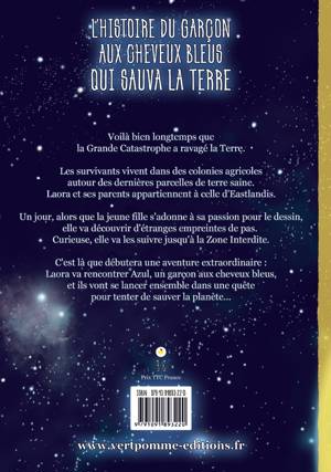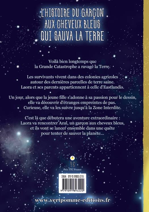 Voilà bien longtemps que la Grande Catastrophe a ravagé la Terre. Les survivants vivent dans des colonies agricoles autour des dernières parcelles de terre saine. Laora et ses parents appartiennent à celle d'Eastlandis. Un jour, alors que la jeune fille s'adonne à sa passion pour le dessin, elle va découvrir d'étranges empreintes de pas. Curieuse, elle va les suivre jusqu'à la Zone Interdite. C'est là que débutera une aventure extraordinaire : Laora va rencontrer Azul, un garçon aux cheveux bleus, et ils vont se lancer ensemble dans une quête pour tenter de sauver la planète... Le récit est suivi d'un dossier dans lequel science et fiction se mêlent, notamment au travers d’œuvres dites « post-apocalyptiques », et où l'on trouve des informations sur les différents types d'énergies. Conseillé à partir de 9 ans.