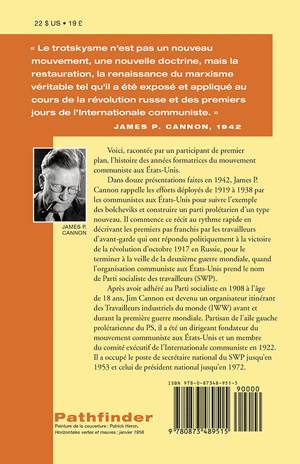 Dans 12 présentations faites en 1942, James P. Cannon raconte les premiers efforts des communistes aux États-Unis pour suivre l'exemple des bolcheviks et construire un parti prolétarien d'un type nouveau. Tout en se concentrant sur la décennie de 1928 à 1938, son récit commence avec la réponse politique des travailleurs d'avant-garde à la révolution russe d'octobre 1917 et se termine à la veille de la deuxième guerre mondiale, quand l'organisation communiste aux États-Unis prend le nom de Parti socialiste des travailleurs (SWP).