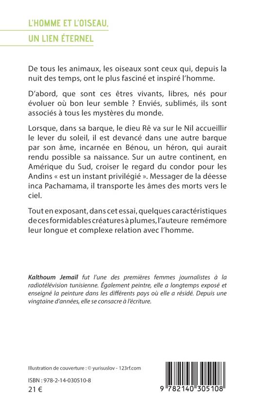 De tous les animaux, les oiseaux sont ceux qui, depuis la nuit des temps, ont le plus fasciné et inspiré l'homme. D'abord, que sont ces êtres vivants, libres, nés pour évoluer où bon leur semble ? Enviés, sublimés, ils sont associés à tous les mystères du monde. Lorsque dans sa barque le dieu Rê à tête de faucon va sur le Nil accueillir le lever du soleil, il est devancé dans une autre barque par son âme, incarnée en Bénou, un héron, qui aurait rendu possible sa naissance. Sur un autre continent, en Amérique du Sud, croiser le regard du condor pour les Andins est un instant privilégié . Messager de la déesse inca Pachamama, il transporte les âmes des morts vers le ciel. Tout en exposant, dans cet essai, quelques caractéristiques de ces formidables créatures à plumes, l'auteure remémore leur longue et complexe relation avec l'homme.