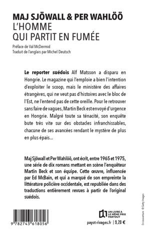 Le reporter suédois Alf Matsson a disparu en Hongrie. Le magazine qui l'emploie a bien l'intention d'exploiter le scoop, mais le ministère des affaires étrangères, qui ne veut pas d'histoires avec le bloc de l'Est, ne l'entend pas de cette oreille. Pour le retrouver sans faire de vagues, Martin Beck est envoyé d'urgence en hongrie. Malgré toute sa ténacité, son enquête bute très vite sur des obstacles infranchissables, chacune de ses avancées rendant le mystère de plus en plus épais... Maj Sjöwall et Per Wahlöö, ont écrit, entre 1965 et 1975, une série de dix romans mettant en scène l'enquêteur Martin Beck et son équipe. Cette oeuvre, influencée par Ed Mcbain, et qui a marqué de son empreinte la littérature policière occidentale, est republiée dans des traductions entièrement revues à part