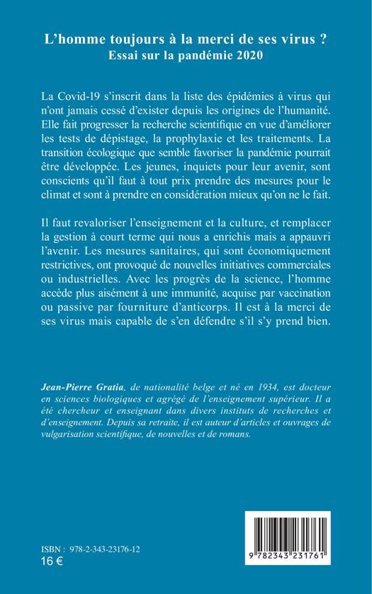 La Covid-19 s'inscrit dans la liste des épidémies à virus qui n'ont jamais cessé d'exister depuis les origines de l'humanité. Elle fait progresser la recherche scientifique en vue d'améliorer les tests de dépistage, et les traitements. Les jeunes, inquiets pour leur avenir, sont conscients qu'il faut à tout prix prendre des mesures pour le climat. Il faut revaloriser l'enseignement et la culture, et remplacer la gestion à court terme qui nous a enrichis mais a appauvri l'avenir. Les mesures sanitaires, qui sont économiquement restrictives, ont provoqué de nouvelles initiatives commerciales ou industrielles. Avec les progrès de la science, l'homme accède plus aisément à une immunité, acquise par vaccination ou passive par fourniture d'anticorps. Il est à la merci de ses virus mais capable de s'en défendre s'il s'y prend bien.