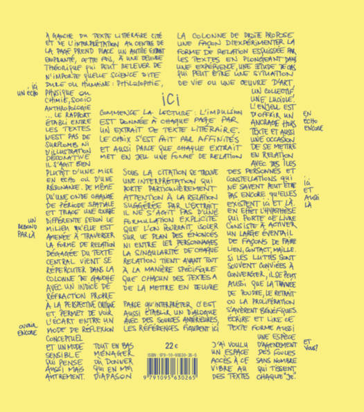 Dans un monde où les liens se crispent, se liquéfient, déployer des formes de vie solidaires et émancipées implique de s'arracher aux modes de rapports établis et d'en expérimenter de nouveaux. Mais lesquels ? Ce livre invite à porter attention aux qualités singulières de toute relation : chaque page reprend la structure du Talmud pour agencer un ensemble de matériaux empruntés à différents univers d'action, de création et de réflexion. Les textes et leurs interprétations littéraires opèrent comme des agents de liaison permettant de caractériser les modes de relation en dehors des termes habituellement employés pour les désigner et, ce faisant, ouvrir une brèche où être en lien autrement.
