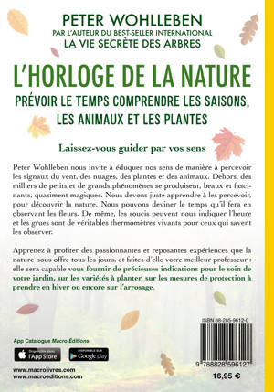 Peter Wohlleben nous invite à éduquer nos sens de manière à percevoir les signaux du vent, des nuages, des plantes et des animaux. Dehors, des milliers de petits et de grands phénomènes se produisent, beaux et fascinants, quasiment magiques. Nous devons juste apprendre à les percevoir, pour découvrir la nature.