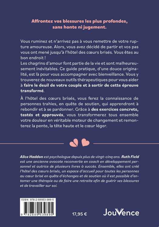 À l’hôtel des cœurs brisés, vous ferez la connaissance de personnes trahies, en quête de soutien, qui apprendront à rebondir et à se pardonner. Grâce à des exercices concrets, testés et approuvés, vous transformerez tous ensemble votre douleur en véritable moteur de changement et remonterez la pente, la tête haute et le cœur léger.