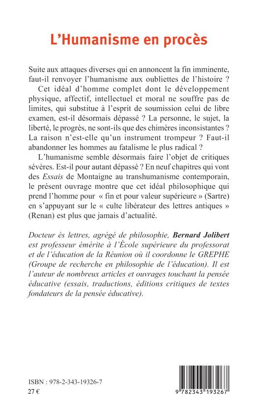 Suite aux attaques diverses qui en annoncent la fin imminente, faut-il renvoyer l'humanisme aux oubliettes de l'histoire ? Cet idéal d'homme complet dont le développement physique, affectif, intellectuel et moral ne souffre pas de limites, qui substitue à l'esprit de soumission celui de libre examen, est-il désormais dépassé ? La personne, le sujet, la liberté, le progrès, ne sont-ils que des chimères inconsistantes ? La raison n'est-elle qu'un instrument trompeur ? Faut-il abandonner les hommes au fatalisme le plus radical ? L'humanisme semble désormais faire l'objet de critiques sévères. Est-il pour autant dépassé ?