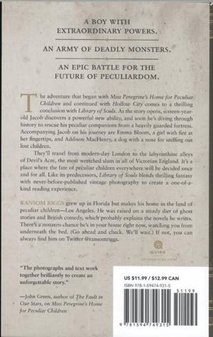 Library of Souls for its unique world, fast action, satisfying answers and a thorough tying up of loose ends."--