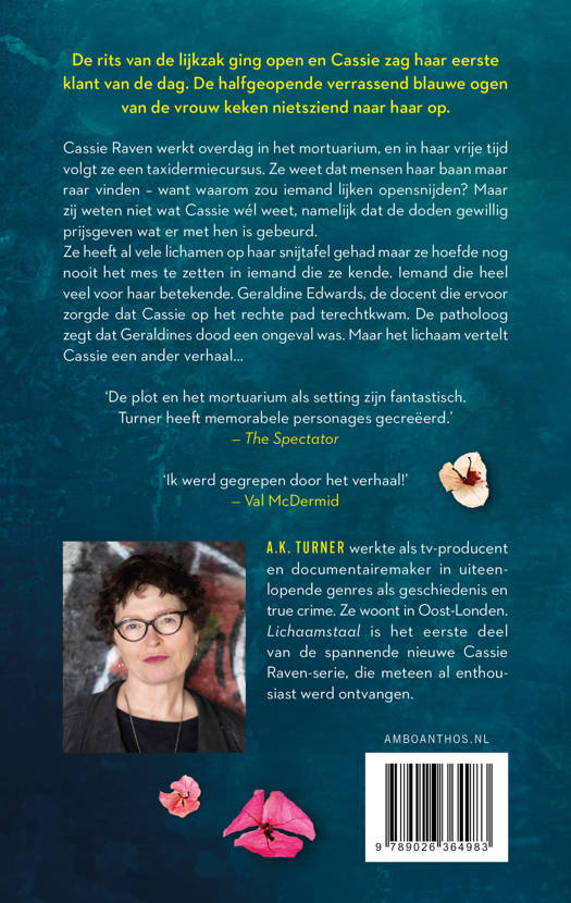 De rits van de lijkzak ging open en Cassie zag haar eerste klant van de dag. De halfgeopende verrassend blauwe ogen van de vrouw keken nietsziend naar haar op. Cassie Raven werkt overdag in het mortuarium, en in haar vrije tijd volgt ze een taxidermiecursus. Ze weet dat mensen haar baan maar raar vinden – want waarom zou iemand lijken opensnijden? Maar zij weten niet wat Cassie wél weet, namelijk dat de doden gewillig prijsgeven wat er met hen is gebeurd. Ze heeft al vele lichamen op haar snijtafel gehad maar ze hoefde nog nooit het mes te zetten in iemand die ze kende. Iemand die heel veel voor haar betekende. Geraldine Edwards, de docent die ervoor zorgde dat Cassie op het rechte pad terechtkwam. De patholoog zegt dat Geraldines dood een ongeval was. Maar het lichaam vertelt Cassie een ander verhaal… 'Lichaamstaal' is het eerste boek in de Cassie Raven-serie. Ontdek meer Cassie in 'Levenslang' en 'Hoofdzaak'.