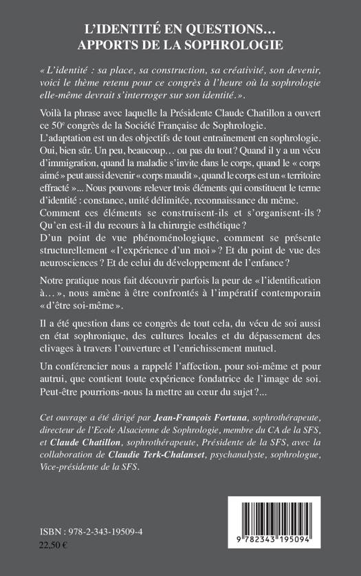 "L'identité : sa place, sa construction, sa créativité, son devenir, voici le thème retenu pour ce congrès à l'heure où la sophrologie elle-même devrait s'interroger sur son identité". Voilà la phrase avec laquelle la Présidente Claude Chatillon a ouvert ce 50e congrès de la Société Française de Sophrologie. L'adaptation est un des objectifs de tout entraînement en sophrologie. Il a été question dans ce congrès du vécu de soi en état sophronique, des cultures locales et du dépassement des clivages à travers l'ouverture et l'enrichissement mutuel.