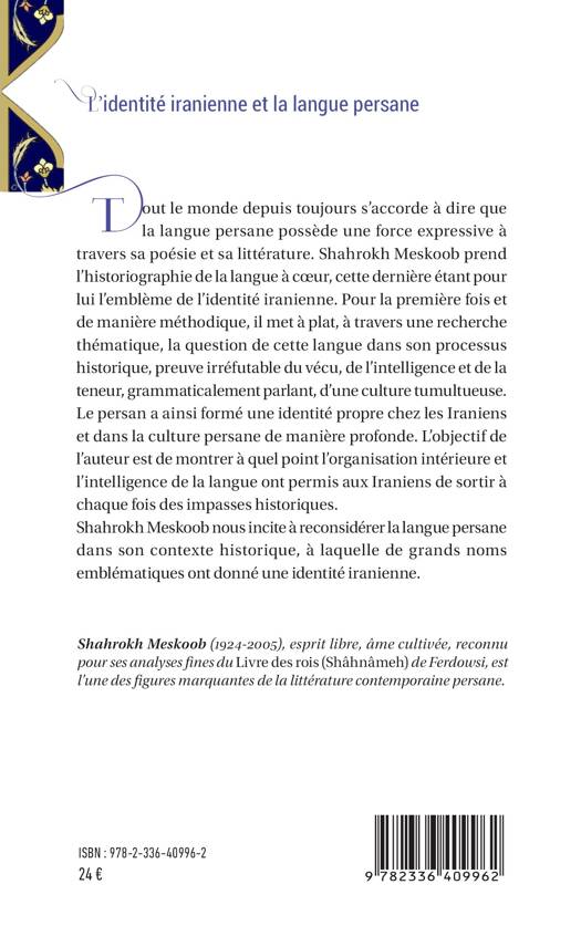 Le persan a ainsi formé une identité propre chez les Iraniens et dans la culture persane de manière profonde. L’objectif de l’auteur est de montrer à quel point l’organisation intérieure et l’intelligence de la langue ont permis aux Iraniens de sortir à chaque fois des impasses historiques.