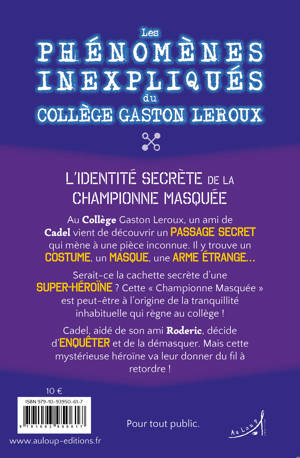 Au Collège Gaston Leroux, un ami de Cadel vient de découvrir un passage secret qui mène à une pièce inconnue. Il y trouve un costume, un masque, une arme étrange...<br /> Serait-ce la cachette secrète d'une super-héroïne ? Cette « Championne Masquée » est peut-être à l'origine de la tranquillité inhabituelle qui règne au collège !<br /> Cadel, aidé de son ami Roderic, décide d'enquêter et de la démasquer. Mais cette mystérieuse héroïne va leur donner du fil à retordre !
