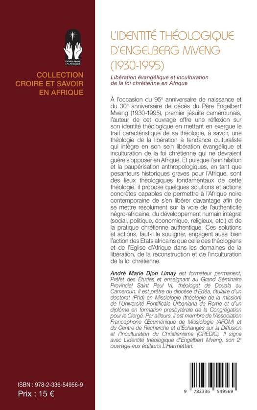 À l'occasion du 95e anniversaire de naissance et du 30e anniversaire de décès du Père Engelbert Mveng (1930-1995), premier jésuite camerounais, l'auteur de cet ouvrage offre une réflexion sur son identité théologique en mettant en exergue le trait caractéristique de sa théologie, à savoir, une théologie de la libération à tendance culturaliste qui intègre en son sein libération évangélique et inculturation de la foi chrétienne qui ne devraient guère s'opposer en Afrique. Et puisque l'annihilation et la paupérisation anthropologiques, en tant que pesanteurs historiques graves pour l'Afrique, sont des lieux théologiques fondamentaux de cette théologie, il propose quelques solutions et actions concrètes capables de permettre à l'Afrique noire contemporaine de s'en libérer davantage afin de se mettre résolument sur la voie de l'authenticité négro-africaine, du développement humain intégral (social, politique, économique, religieux, etc.) et de la pratique chrétienne authentique. Ces solutions et actions, faut-il le souligner, engagent aussi bien l'action des Etats africains que celle des théologiens et de l'Eglise d'Afrique dans les domaines de la libération, de la reconstruction et de l'inculturation de la foi chrétienne.