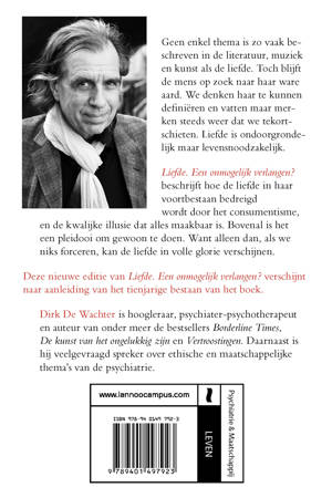 Liefde. Een onmogelijk verlangen? beschrijft hoe de liefde in haar voortbestaan bedreigd wordt door het consumentisme, en de kwalijke illusie dat alles maakbaar is. Bovenal is het een pleidooi om gewoon te doen. Want alleen dan, als we niks forceren, kan de liefde in volle glorie verschijnen.