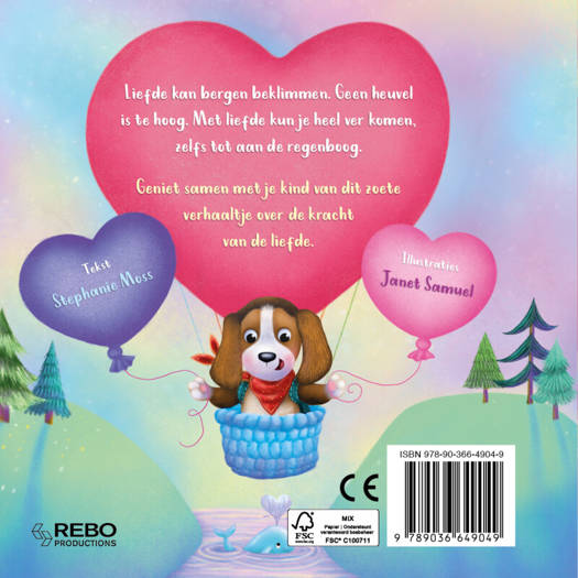 Liefde kan bergen beklimmen. Geen heuvel is te hoog. Met liefde kun je heel ver komen, zelfs tot aan de regenboog. Geniet samen met je kind van dit zoete verhaaltje over de kracht van de liefde.