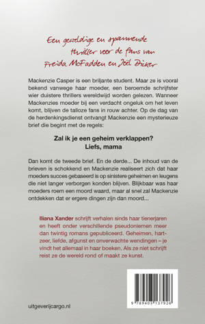 Mackenzie Casper is een briljante student. Maar ze is vooral bekend vanwege haar moeder, een beroemde schrijfster wier duistere thrillers wereldwijd worden gelezen. Wanneer Mackenzies moeder bij een verdacht ongeluk om het leven komt, blijven de talloze fans in rouw achter. Op de dag van de herdenkingsdienst ontvangt Mackenzie een mysterieuze brief die begint met de regels: