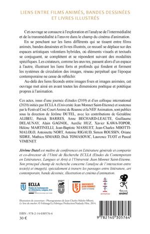 Cet ouvrage se consacre à l'exploration et l'analyse de l'intermédialité et de la transmédialité à l'oeuvre dans le champ du cinéma d'animation. En se penchant sur les liens différents qui se tissent entre films animés, bandes dessinées et livres illustrés, ce recueil se déplace sur des espaces artistiques volontiers hybrides, où éléments visuels et textuels se conjuguent, se complètent et se répondent suivant des modalités spécifiques. Les créateurs, comme les oeuvres, passent alors d'un espace à l'autre, illustrant les liens forts et profonds qui fondent et forment les systèmes de circulation des images, réseau perpétuel que l'époque contemporaine ne cesse de réfléchir. Au-delà des liens féconds entre images fixes et images animées, cet ouvrage met ainsi en avant toutes les dimensions poétique et poïétique propres à l'animation.