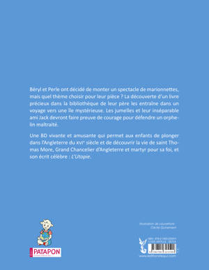 Béryl et Perle ont décidé de monter un spectacle de marionnettes, mais quel thème choisir pour leur pièce ? La découverture d’un livre précieux dans la bibliothèque de leur père les entraîne dans un voyage vers une île mystérieuse. Les jumelles et leur inséparable ami Jack devront faire preuve de courage pour défendre un orphelin maltraité. Une BD vivante et amusante qui permet aux enfants de découvrir la vie et l’œuvre de saint Thomas More, Grand Chancelier d’Angleterre et martyr pour sa foi.