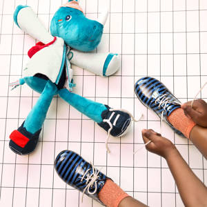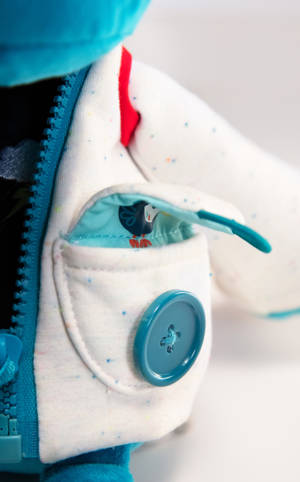 Marius a encore besoin d'un peu d'aide pour s'habiller. Peux-tu l'aider à fermer sa veste, à nouer ses lacets, à glisser sa casquette sur ses oreilles et à fermer son sac à dos ? Stimule la motricité fine et permet la découverte des habiletés d'habillage et de déshabillage.
