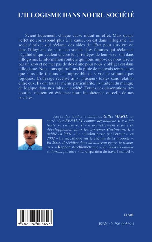 Scientifiquement, chaque cause induit un effet. Mais quand l'effet ne correspond plus à la cause, on est dans l'illogisme. La société privée qui réclame des aides de l'Etat est dans l'illogisme de sa raison sociale. Les femmes qui réclament l'égalité et qui veulent encore les privilèges de leur sexe sont dans l'illogisme. Nous qui traitons la pluie de mauvais temps alors que sans elle il nous est impossible de vivre ne sommes pas logiques. Tous les textes mettent en évidence notre incohérence ou celle de nos sociétés...