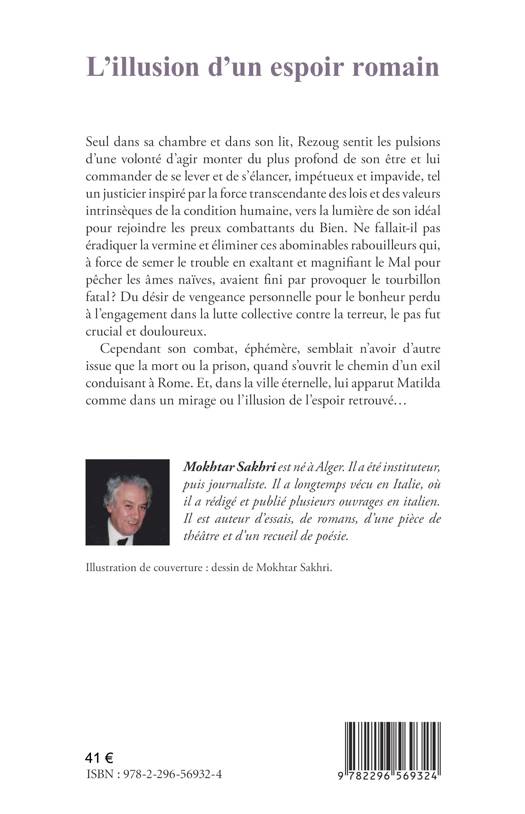 Seul dans sa chambre et dans son lit, Rezoug sentit les pulsions d'une volonté d'agir monter du plus profond de son être et lui commander de se lever et de s'élancer, impétueux et impavide, tel un justicier inspiré par la force transcendante des lois et des valeurs intrinsèques de la condition humaine, vers la lumière de son idéal, pour rejoindre les preux combattants du Bien..Cependant son combat contre la terreur semblait n'avoir d'autre issue que la mort ou la prison, quand s'ouvrit le chemin d'un exil conduisant à Rome...