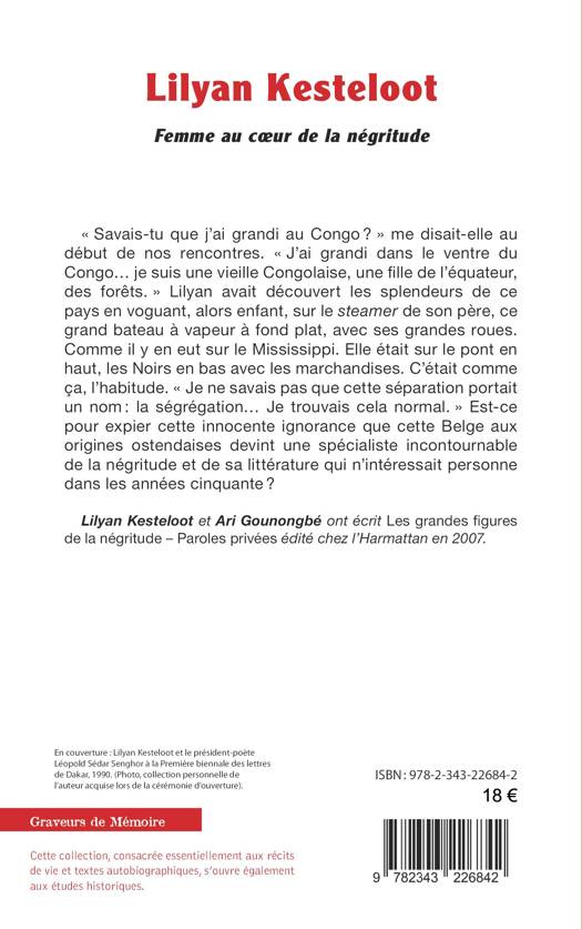 Lylian Kesteloot avait découvert les splendeurs du Congo en voguant enfant sur le steamer de son père, ce bateau à grandes roues et fond plat, pareil à ceux du Mississippi. Elle était sur le pont en haut, les Noirs en bas avec les marchandises. « Je ne savais pas que cette séparation portait un nom : la ségrégation… » Cette Belge aux origines ostendaises deviendra alors une spécialiste de la négritude et de sa littérature dans les années cinquante, époque où celle-ci n’intéressait personne.