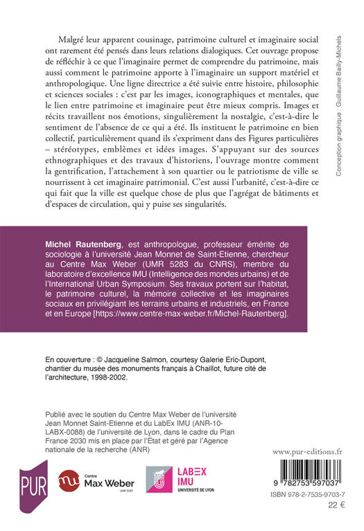 Malgré leur apparent cousinage, patrimoine culturel et imaginaire social ont rarement été pensés dans leurs relations dialogiques. Cet ouvrage propose de réfléchir à ce que l’imaginaire permet de comprendre du patrimoine, mais aussi comment le patrimoine apporte à l’imaginaire un support matériel et anthropologique. Une ligne directrice a été suivie entre histoire, philosophie et sciences sociales : c’est par les images, iconographiques et mentales, que le lien entre patrimoine et imaginaire peut être mieux compris. Images et récits travaillent nos émotions, singulièrement la nostalgie, c’est-à-dire le sentiment de l’absence de ce qui a été. Ils instituent le patrimoine en bien collectif, particulièrement quand ils s’expriment dans des Figures particulières – stéréotypes, emblèmes et idées images. S’appuyant sur des sources ethnographiques et des travaux d’historiens, l’ouvrage montre comment la gentrification, l’attachement à son quartier ou le patriotisme de ville se nourrissent à cet imaginaire patrimonial. C’est aussi l’urbanité, c’est-à-dire ce qui fait que la ville est quelque chose de plus que l’agrégat de bâtiments et d’espaces de circulation, qui y puise ses singularités.