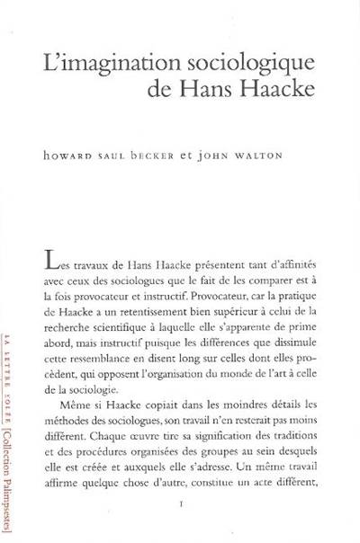 Traduction longtemps attendue d'un essai consacré au travail de l'artiste Hans Haacke, sans doute le plus emblématique de l'art engagé de notre époque, et paru initialement dans un ouvrage lui-même devenu un classique : Framing and Being Framed. 7 Works 1970-75, cette étude procède à l'évaluation de l'oeuvre de Haacke du point de vue sociologique et donne l'occasion à Howard Saul Becker de revenir, dans une postface inédite, sur la rencontre avec l'artiste qui l'a initié à l'art contemporain.