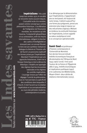 Ce livre est une synthèse mettant en dialogue la théorie et l’histoire afin de fournir un panorama explicatif des formes prises par l’impérialisme. Abordant l’impérialisme par une approche historienne, il tient de la fresque historique et de la démarche théorique. Il établit une typologie des régimes liant les économies nationales et les régimes de contrôle impérialiste.