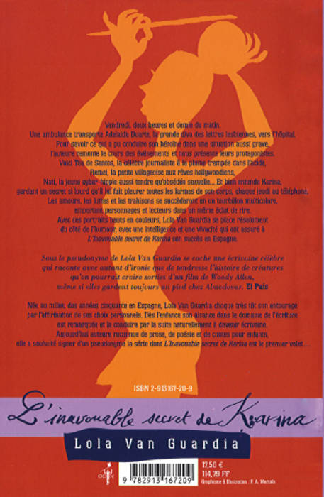 Barcelone, vendredi, deux heures et demie du matin. Une ambulance transporte Adelaida Duarte, la grande diva des lettres lesbiennes, vers l'hôpital. L'auteure va remonter le cours des événements et nous présenter leurs protagonistes. Voici Tea de Santos, la célèbre journaliste à la plume trempée dans l'acide, Remei, la petite villageoise aux rêves hollywoodiens, Nati, la jeune cyber-hippie aussi tendre qu'obsédée sexuelle... Et bien entendu Karina, gardant un secret si lourd qu'il lui fait pleurer toutes les larmes de son corps, chaque jeudi au téléphone.