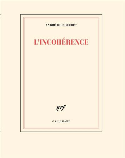 André du Bouchet a recueilli sous le titre L'incohérence des textes ayant fait l'objet de publications en revue, catalogue d'exposition et livre d'artiste. Les plus anciens datent de 1954 et ont été tellement retravaillés qu'ils sont presque méconnaissables. Le volume a été édité pour la première fois par Paul Otchakovsky-Laurens, chez Hachette, en 1979. En 1984, l'ouvrage est entré au catalogue de Fata Morgana. Épuisé depuis de nombreuses années, il fait l'objet, pour le 100ᵉ anniversaire de la naissance du poète, d'une réédition respectant la mise en page d'origine, avec ses espacements typographiques, la multiplication des signes de ponctuation et les annotations dans les marges.