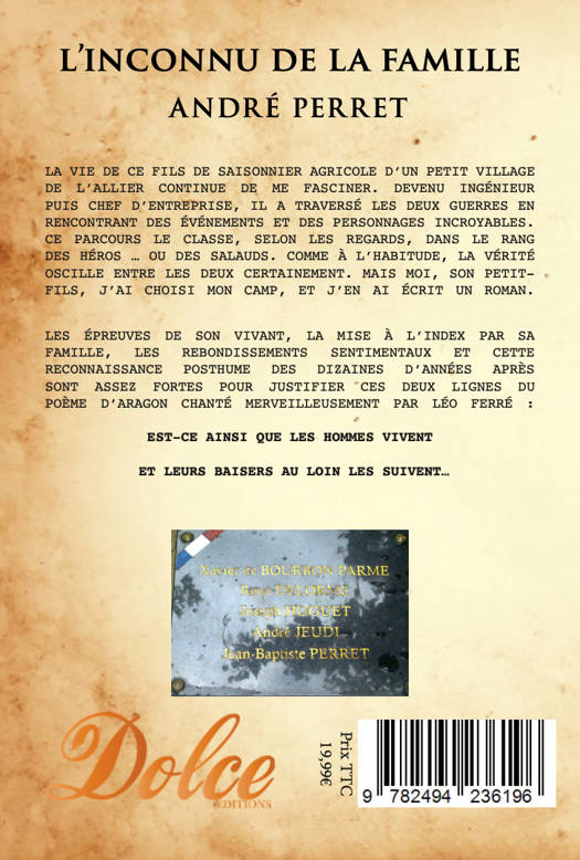 La vie de ce fils de saisonnier agricole d’un petit village de l’Allier continue de me fasciner. Devenu Ingénieur puis Chef d’Entreprise, il a traversé les deux guerres en rencontrant des événements et des personnages incroyables. Ce parcours le classe, selon les regards, dans le rang des héros … ou des salauds. Comme à l’habitude, la vérité oscille entre les deux certainement. Mais moi, son petit-fils, j’ai choisi mon camp, et j’en ai écrit un roman.