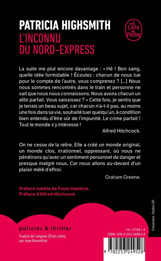 La suite me plut encore davantage : « Une idée formidable ! Supposez que chacun de nous tue pour le compte de l’autre ? Nous nous sommes rencontrés dans le train et personne ne sait que nous nous connaissons. Nous avons chacun un alibi parfait. Un alibi sans la moindre fissure ! »
