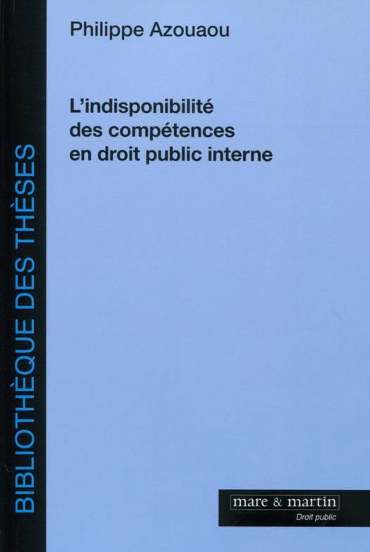 L'indisponibilité des compétences est un principe bien connu des publicistes, car, derrière cette formule sibylline, se cache une interdiction très simple : les autorités publiques ne peuvent pas aliéner leurs compétences. Elle est même perçue par la doctrine majoritaire comme un principe normatif, c'est-à-dire comme une norme de droit positif qui fixe des interdits aux autorités publiques.