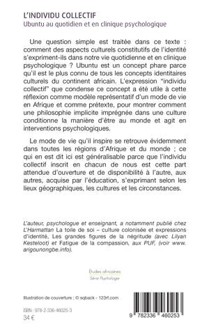 Une question simple est traitée dans ce texte : comment des aspects culturels constitutifs de l’identité s’expriment-ils dans notre vie quotidienne et en clinique psychologique ? Ubuntu est un concept phare parce qu’il est le plus connu de tous les concepts identitaires culturels du continent africain. L’expression “individu collectif” que condense ce concept a été utile à cette réflexion comme modèle représentatif d’un mode de vie en Afrique et comme prétexte, pour montrer comment une philosophie implicite imprégnée dans une culture conditionne la manière d’être au monde et agit en interventions psychologiques.