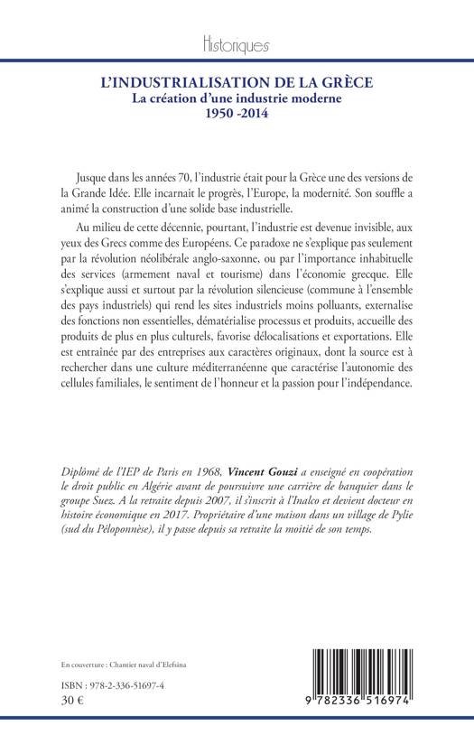Jusque dans les années 70, l'industrie était pour la Grèce une des versions de la Grande Idée. Elle incarnait le progrès, l'Europe, la modernité. Son souffle a animé la construction d'une solide base industrielle. Au milieu de cette décennie, pourtant, l'industrie est devenue invisible, aux yeux des Grecs comme des Européens. Ce paradoxe ne s'explique pas seulement par la révolution néolibérale anglosaxonne, ou par l'importance inhabituelle des services (armement naval et tourisme) dans l'économie grecque. Elle s'explique aussi et surtout par la révolution silencieuse (commune à l'ensemble des pays industriels) qui rend les sites industriels moins polluants, externalise des fonctions non essentielles, dématérialise processus et produits, accueille des produits de plus en plus culturels, favorise délocalisations et exportations. Elle est entraînée par des entreprises aux caractères originaux, dont la source est à rechercher dans une culture méditerranéenne que caractérise l'autonomie des cellules familiales, le sentiment de l'honneur et la passion pour l'indépendance.
