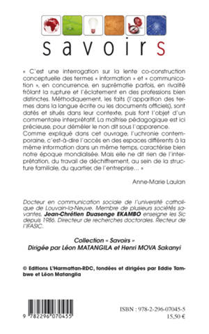 Qu'est-ce l'information ? Qu'est-ce que la communication ? Cet ouvrage propose une interrogation sur la lente co-construction conceptuelle des termes "information" et "communication". Méthodiquement, les faits sont datés, situés dans leur contexte, puis font l'objet d'un commentaire interprétatif. Comme expliqué dans cet ouvrage, l'uchronie contemporaine, c'est-à-dire l'accès en des espaces différents à la même information dans un même temps, caractérise notre époque mondialisée.