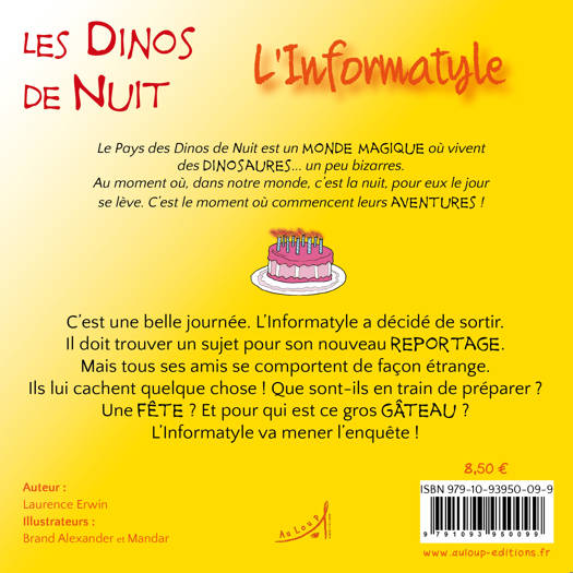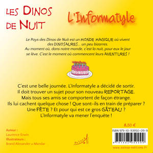 C'est une belle journée. L'Informatyle a décidé de sortir.<br /><br /> Il doit trouver un sujet pour son nouveau reportage.<br /><br /> Mais tous ses amis se comportent de façon étrange.<br /><br /> Ils lui cachent quelque chose ! Que sont-ils en train de préparer ? Une fête ? Et pour qui est ce gros gâteau ?<br /><br /> L'Informatyle va mener l'enquête !<br /><br /> [L'Informatyle est un Vélociraptor.]