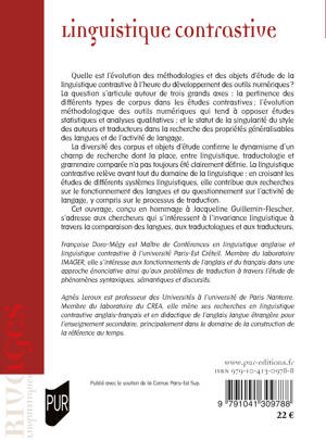 Quelle est l’évolution des méthodologies et des objets d’étude de la linguistique contrastive à l’heure du développement des outils numériques ? La question s’articule autour de trois grands axes : la pertinence des différents types de corpus dans les études contrastives ; l’évolution méthodologique des outils numériques qui tend à opposer études statistiques et analyses qualitatives ; et le statut de la singularité du style des auteurs et traducteurs dans la recherche des propriétés généralisables des langues et de l’activité de langage. La diversité des corpus et objets d’étude confirme le dynamisme d’un champ de recherche dont la place, entre linguistique, traductologie et grammaire comparée n’a pas toujours été clairement définie. La linguistique contrastive relève avant tout du domaine de la linguistique : en croisant les études de différents systèmes linguistiques, elle contribue aux recherches sur le fonctionnement des langues et au questionnement sur l’activité de langage, y compris sur le processus de traduction. Cet ouvrage, conçu en hommage à Jacqueline Guillemin-Flescher, s’adresse aux chercheurs qui s’intéressent à l’invariance linguistique à travers la comparaison des langues, aux traductologues et aux traducteurs.