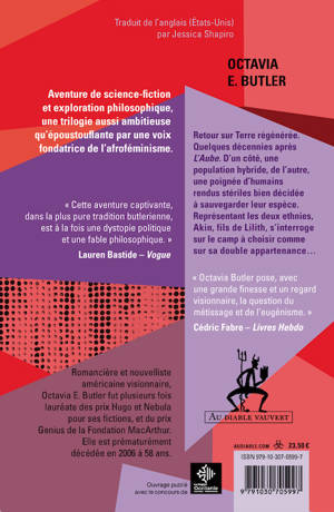 « Octavia Butler pose, avec une grande finesse et un regard visionnaire, la question du métissage et de l'eugénisme. » Cédric Fabre – Livres Hebdo