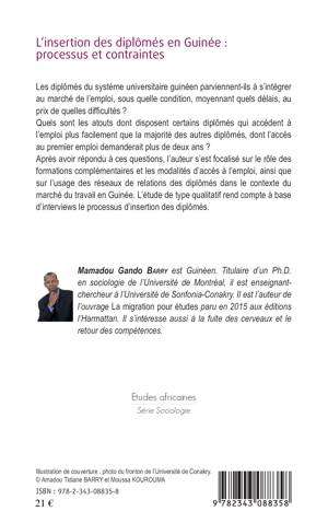 Les diplômés du système universitaire guinéen parviennent-ils à s'intégrer au marché de l'emploi, sous quelle condition, moyennant quels délais, au prix de quelles difficultés ? De quels atouts disposent certains diplômés face à d'autres ? L'auteur se focalise également sur le rôle des formations complémentaires et les modalités d'accès à l'emploi, sur l'usage des réseaux de relations des diplômés dans le contexte du marché du travail en Guinée. L'étude, de type qualitatif, rend compte à base d'interviews du processus d'insertion des diplômés.